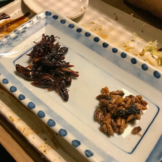 We were given free samples (yay?) of bee larvae and locusts. Max ate them, Tony did not.