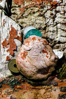 Putting coins into the shrine for good luck.