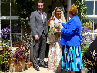 Legally weddings must be indoors in the UK (???) so they stood in this little shack to do the deed.