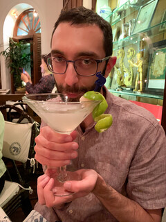 Final meal in Bangkok and the trip, with cousin Diana who was in town! Max treated himself to a large cocktail.