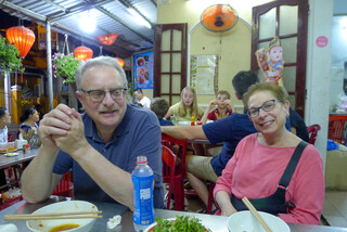 Dinner part 2, having My Quang noodles at this whole-in-the-wall that some locals recommended for a true Hoi An townie experience (though those are some other Western tourists at the table across from us).
