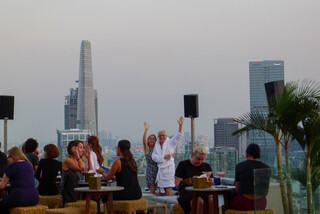 Without even realizing it, I got a photo of our British stalkers waving at us! Fourth time our itineraries have overlapped (cruise, Hue, the road to Hoi An, and now Saigon). We decided it was fate and we had dinner together, where we learned the husband, Andy, had attended Pembroke College and used to be the CEO of EasyJet.