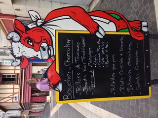 If this is a butcher's shop, why would the cow be smiling and wearing a bib?